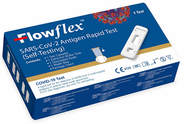 The FlowFlex COVID-19 Lateral Flow Antigen Rapid Test Kit delivers fast results to show if a person is carrying the COVID-19 virus.